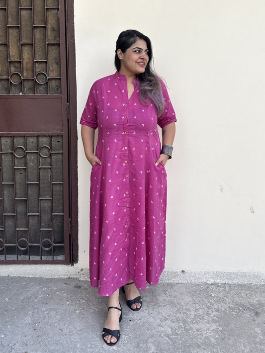 Sunheri Hand Block printed A Line Maxi Shirt Dress