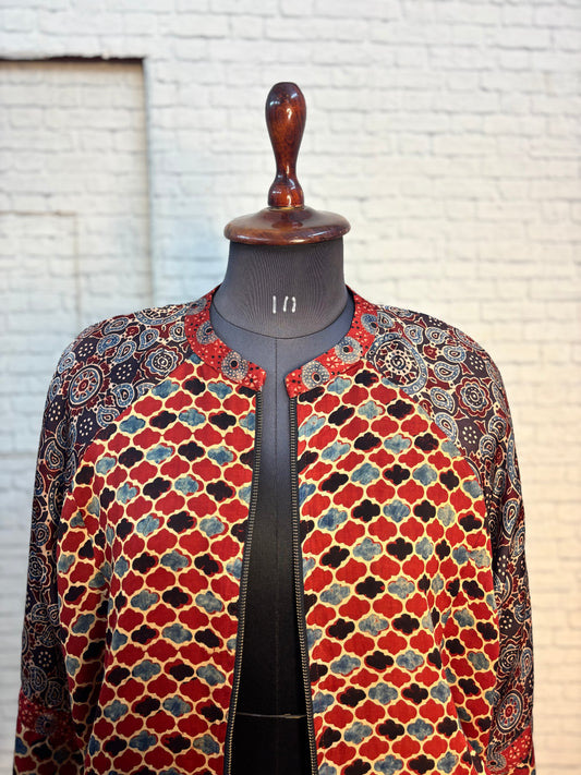 Ajrakh Hand Block Printed Patch Work Unisex Bomber Jacket