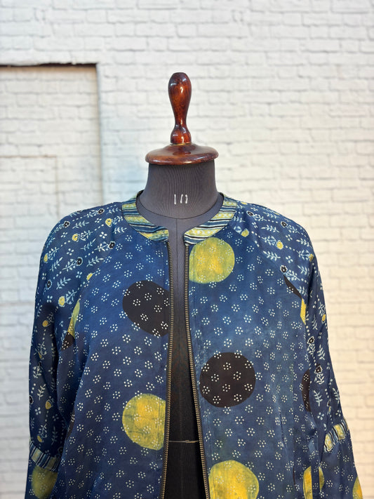 Indigo Dabu Block Printed Patch Work Unisex Bomber Jacket