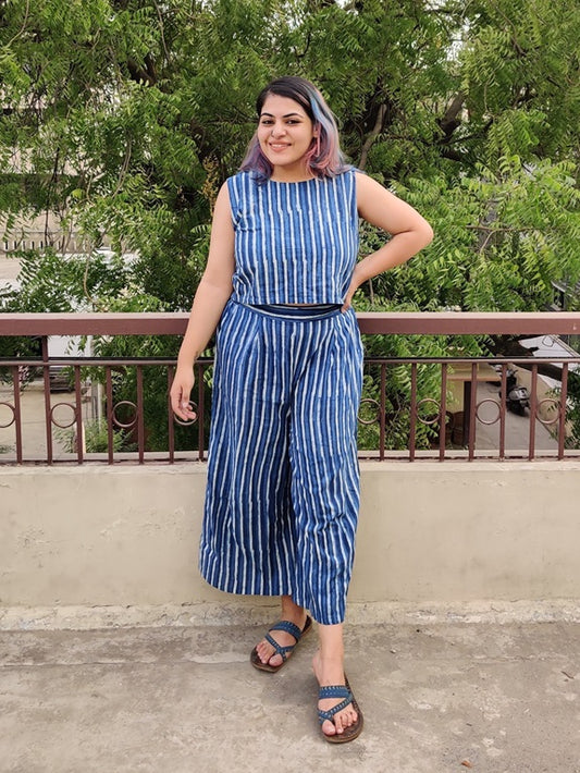 Indigo Lines Coord Set with Sleeveless Top and High waist Plazzo