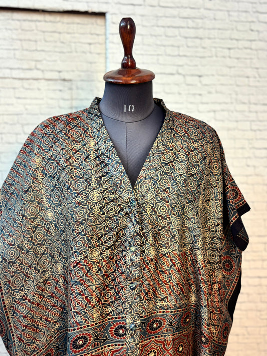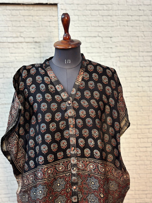 Black Ajrakh Chanderi Shirt Kaftan with Sequin Detailing