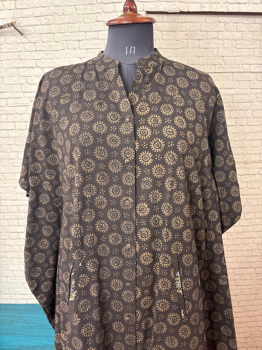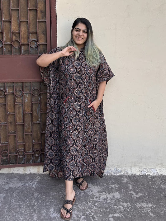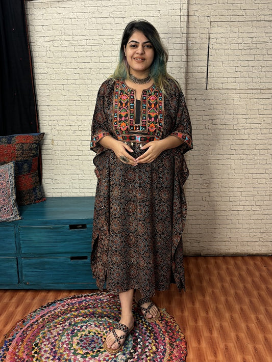 Black Ajrakh Hand Embroidered Patch Kaftan