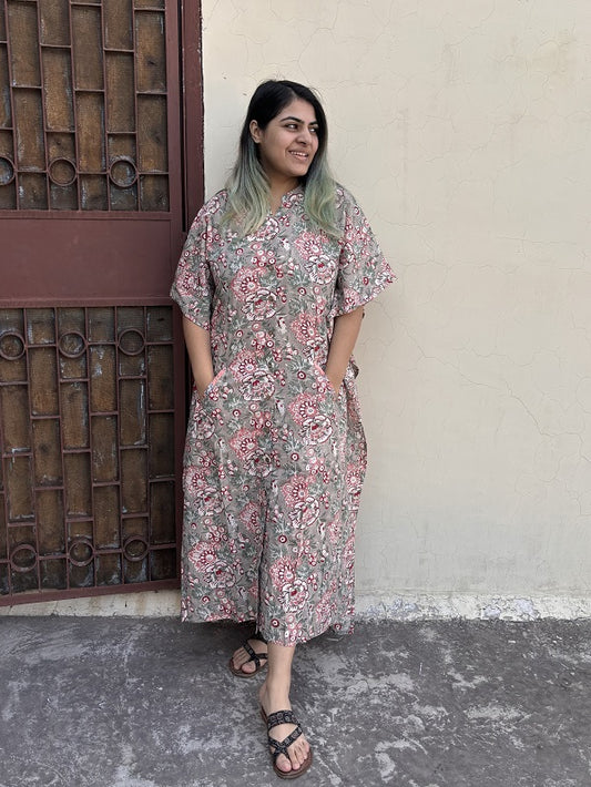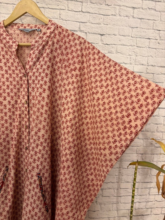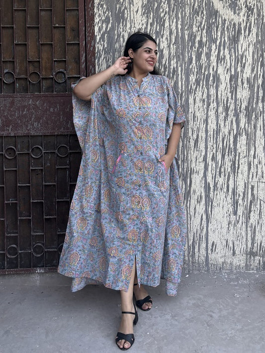 Sale 28% OFFGrey Pink Hand Block Printed Half Half Kaftan