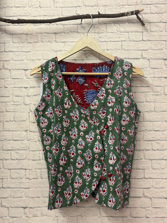 Yellow Blue Hand Block Printed Reversible Waistcoat