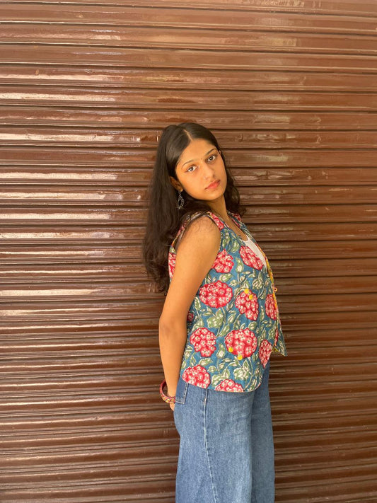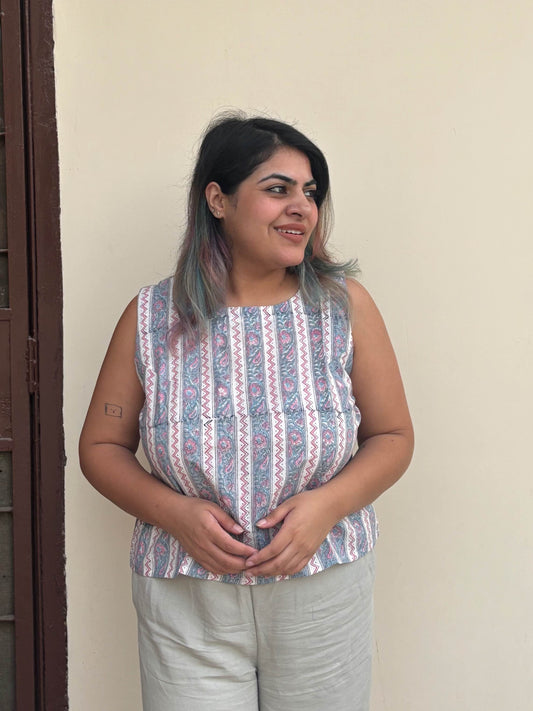 Snowdrop Hand Block Printed Sleeveless Crop Top