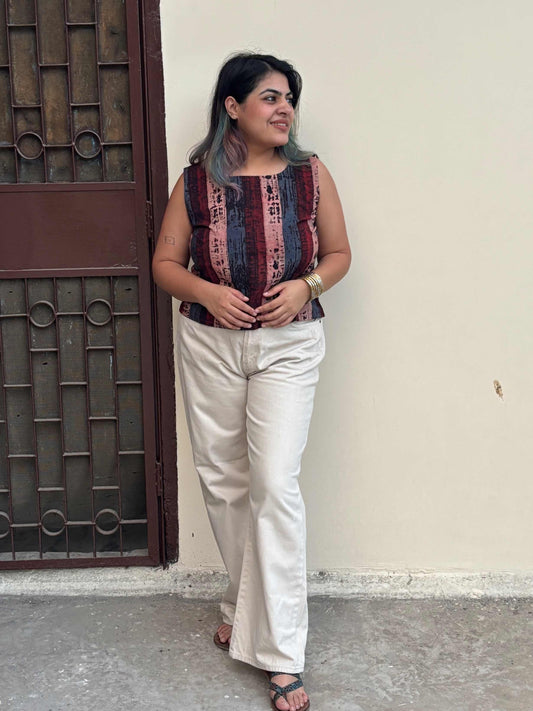 Ajrakh Multi Colour Patch Work Sleeveless Crop Top
