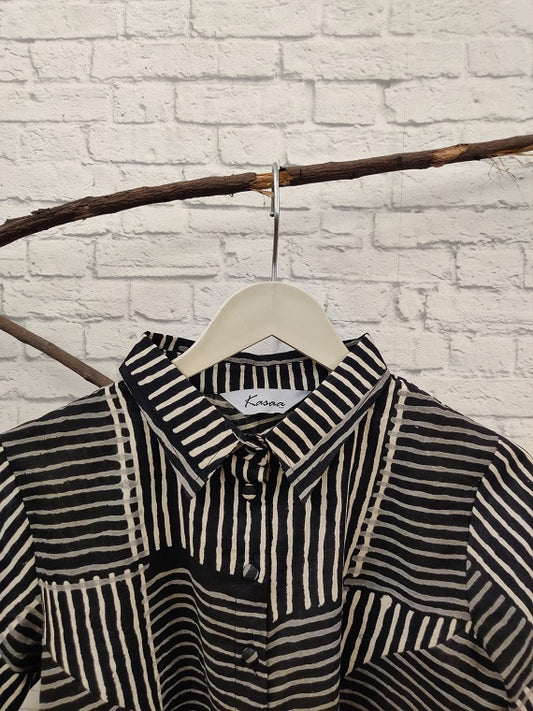 Monochrome Hand Block Printed Crop Top Shirt Blouse (Copy)