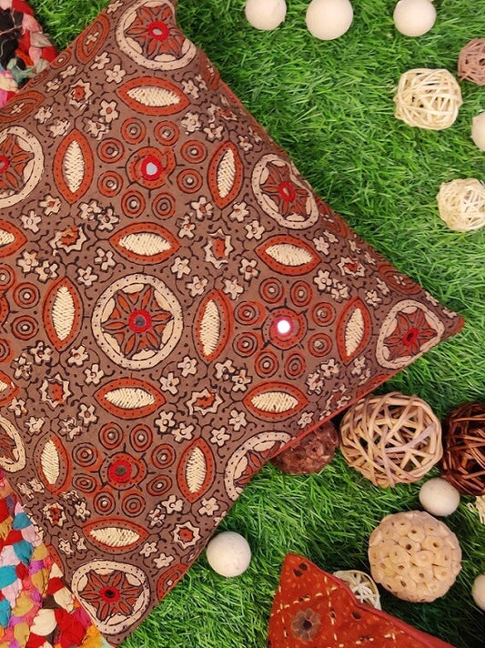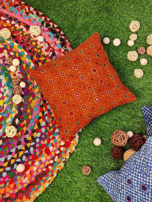 12x12 Brown Red Hand Embroidered Cushion Cover