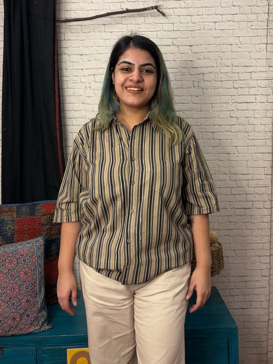 Kashish Ajrakh Lines Hand Block Printed Half Sleeves Unisex Shirt