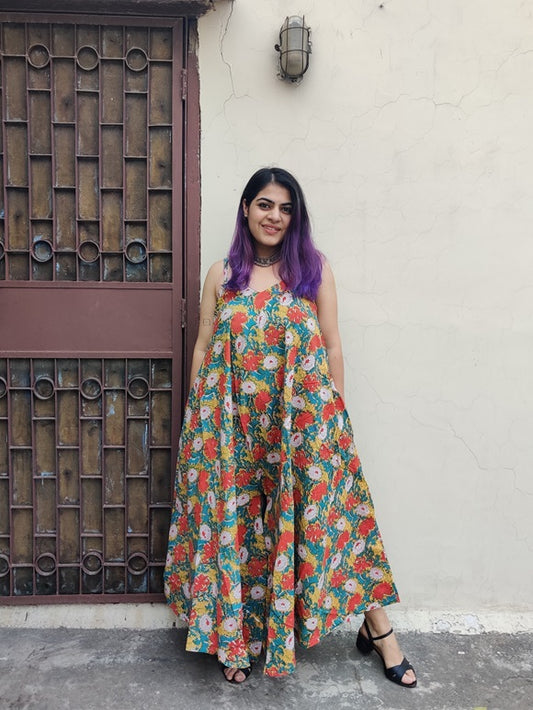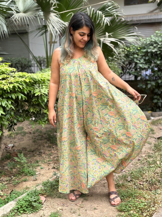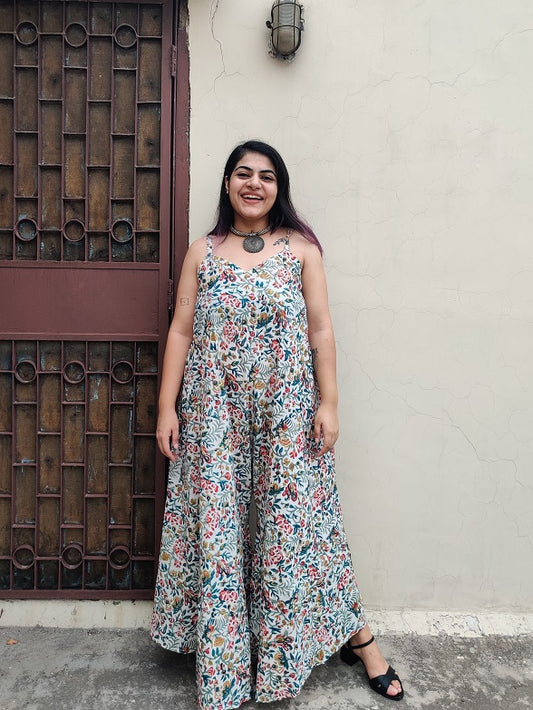 Vasanti Second Edition Hand Block Printed Floral Flared Jumpsuit