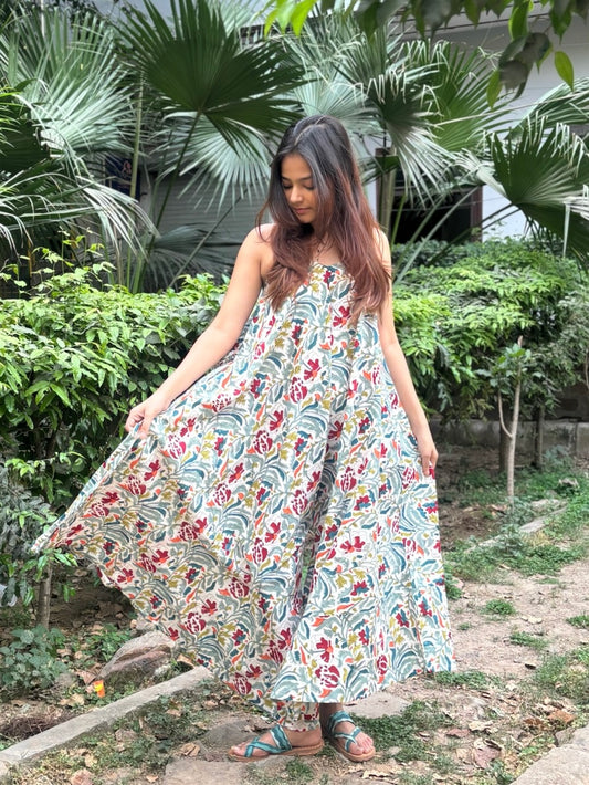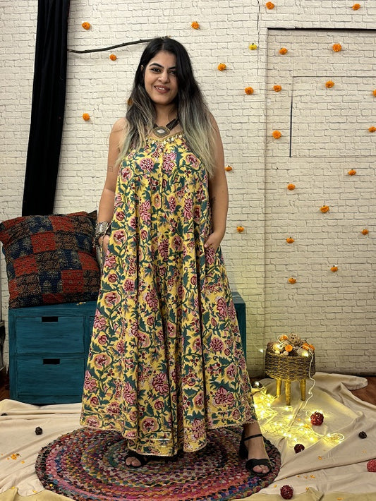 Amaltas Hand Block Printed Floral Flared Jumpsuit