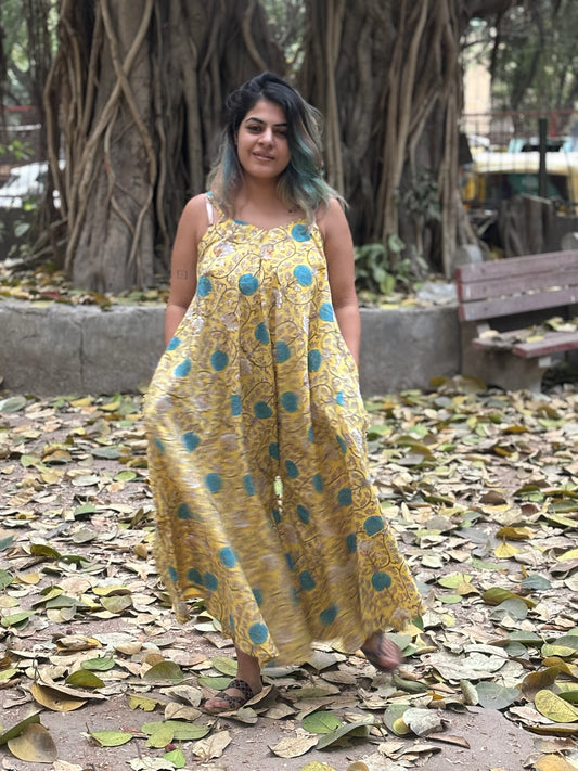 Adira Hand Block Printed Flared Jumpsuit with Gota