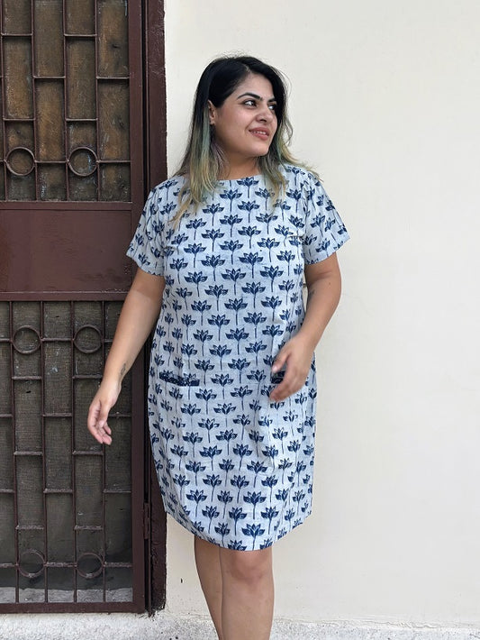 Ambuja Knee Length Shift Dress with Front Pockets