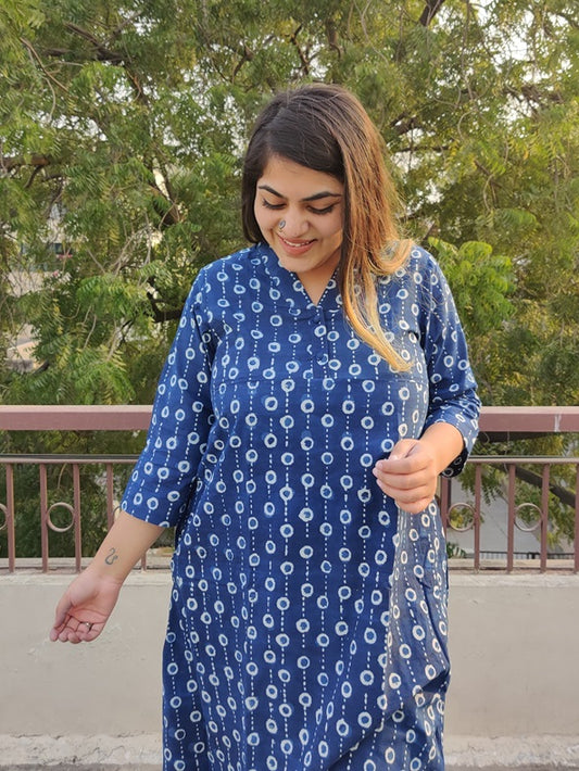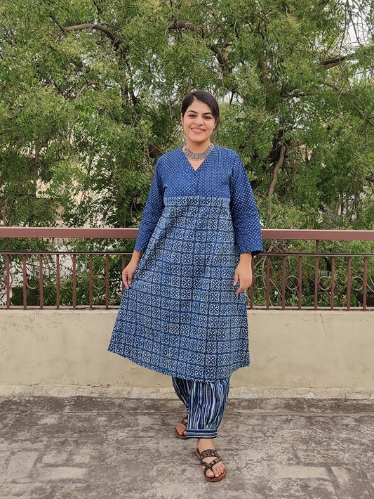 Aahna Hand Block Printed Cotton Kurta Set with Afghani Pants