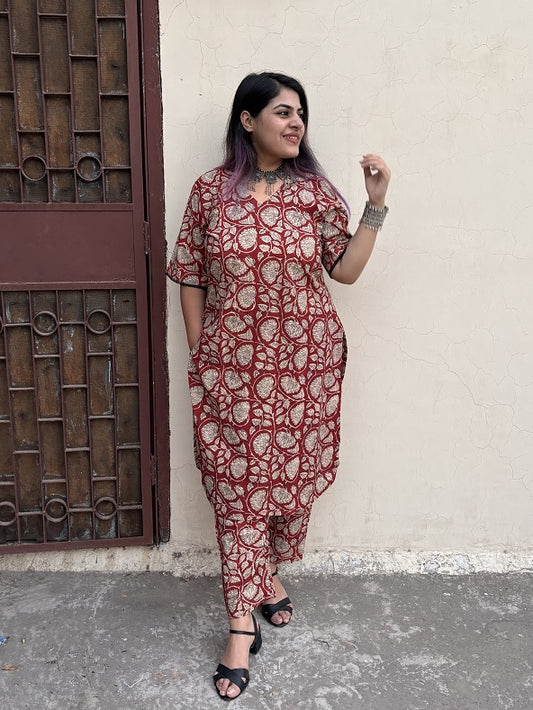 Neela Gulab Hand Block Printed Kurta Coord Set
