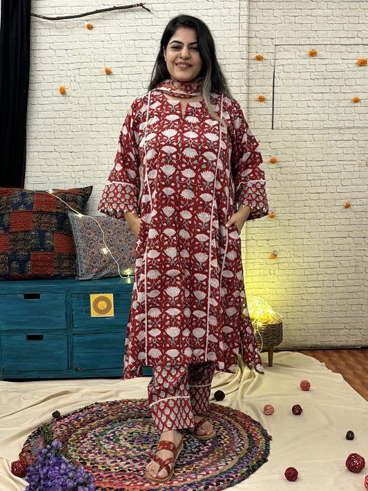 Anaar Hand Block Printed Suit Set with Lace Detailing