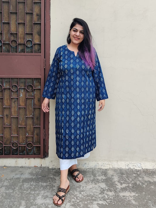 Indigo Dabu Hand Block Printed Cotton Long Kurta