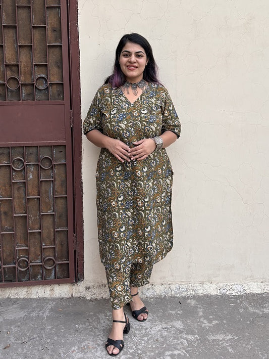 Green Kalamkari Hand Block Printed Kurta Coord Set