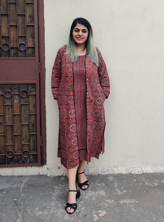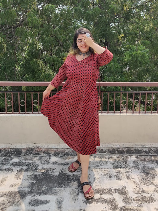 Laal Machi Cotton Ajrakh Angrakha Dress