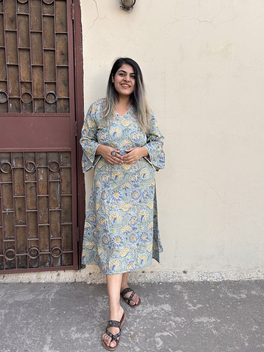 Sale 31% OFFAzalea Cotton Hand Block Printed Angrakha Dress