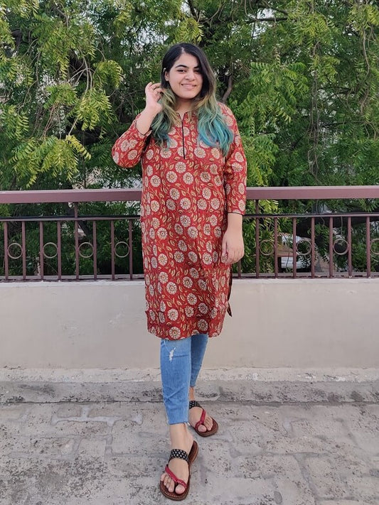 Sale 37% OFFRed Brown Kalamkari Handblock Printed Kurta