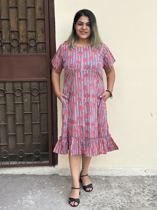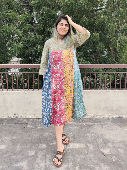 Riot of Colors Hand Block Printed Midi Dress Second Edition