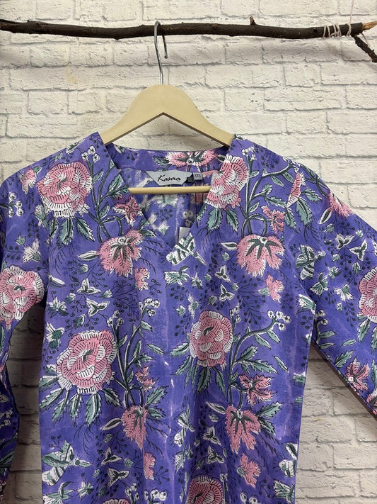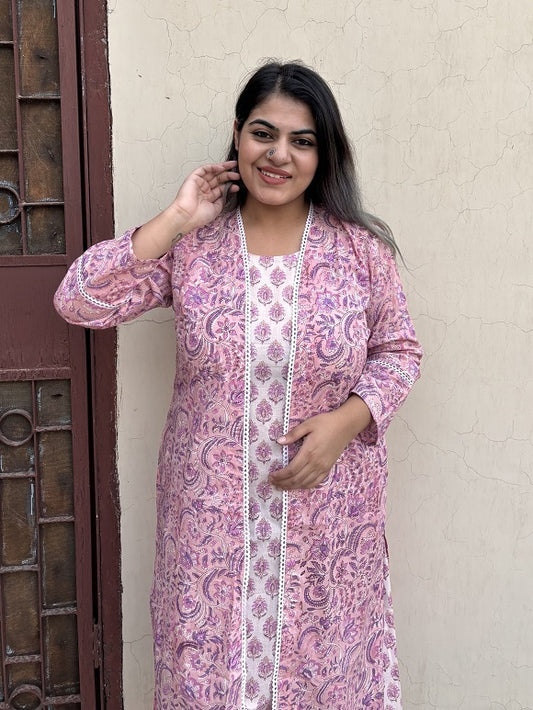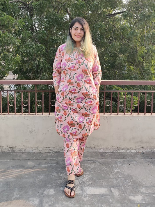 Sale 34% OFFPink Floral Hand Block Printed Coordinated Kurta Set
