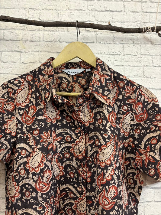 Black Kalamkari Hand Block Printed Crop Top Shirt Blouse