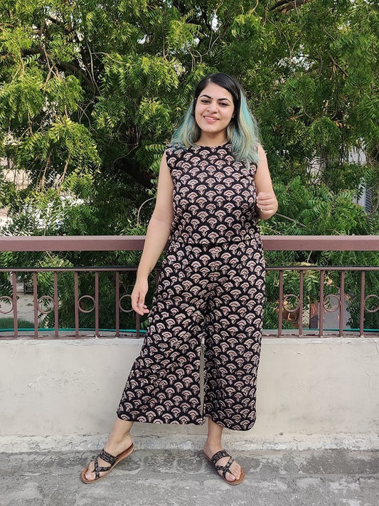 Black Red Bagru Coord Set with Sleeveless Top and High waist Plazzo
