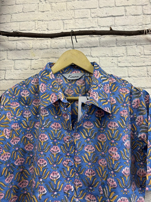 Sale 41% OFFBlue Pink Hand Block Printed Crop Top Shirt Blouse