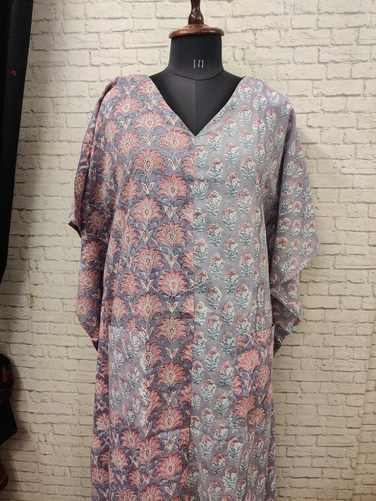 Sale 28% OFFGrey Pink Hand Block Printed Half Half Kaftan