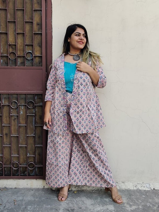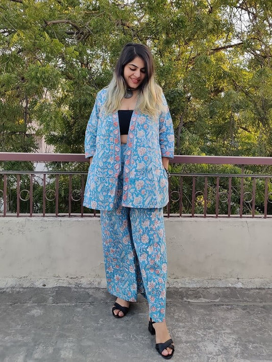 Petunia Hand Block Printed Culottes and Shrug Coordinated Set