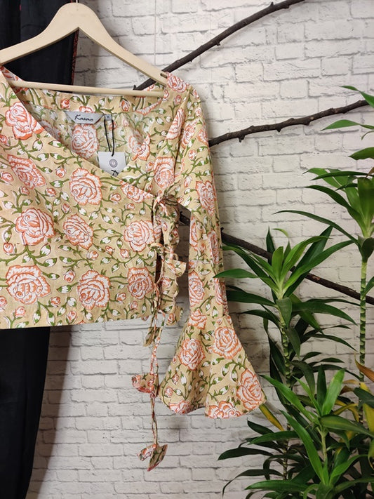 Sale 26% OFFYellow Rose Hand Block Printed Angrakha Short Top