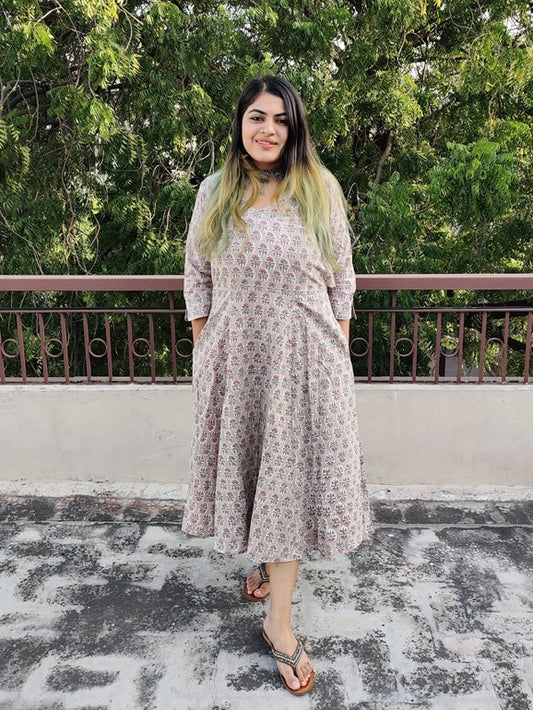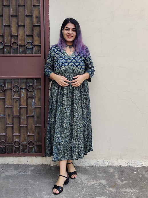 Mayur Ajrakh Hand Block Printed Nyra Cut Dress