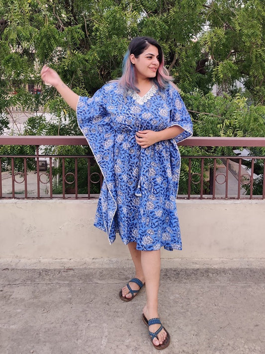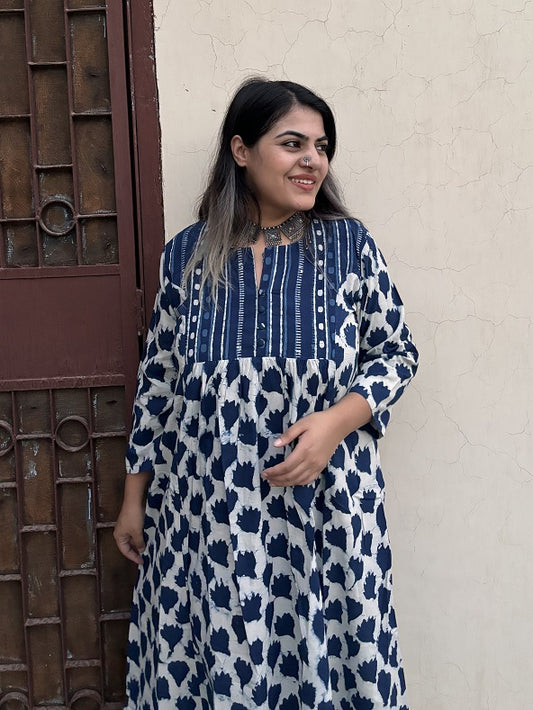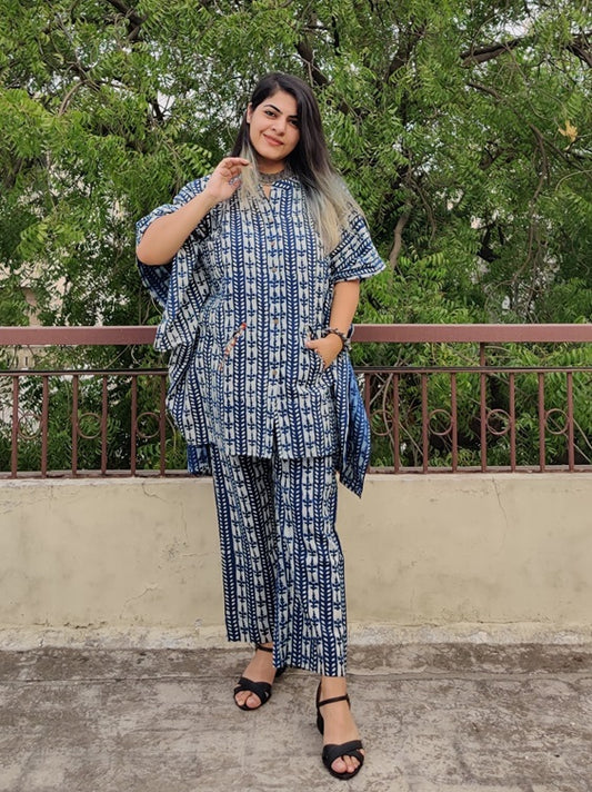 Indigo White Hand Block Printed Shirt Kaftan Coordinated Set