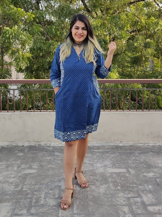 Sale 38% OFFIndigo Dots Hand Block Printed Patch Shift Dress