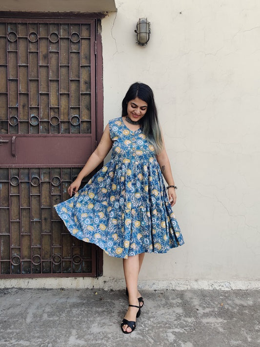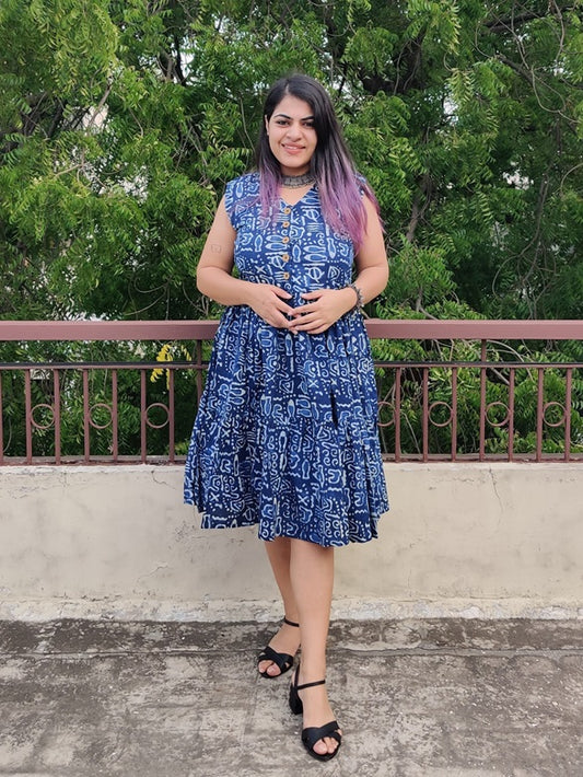 Sale 27% OFFIndigo Doodle Hand Block Sleeveless Tiered Dress