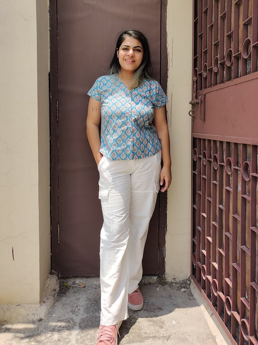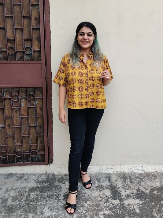 Surajmukhi Hand Block Printed Relaxed Fit Short Shirt