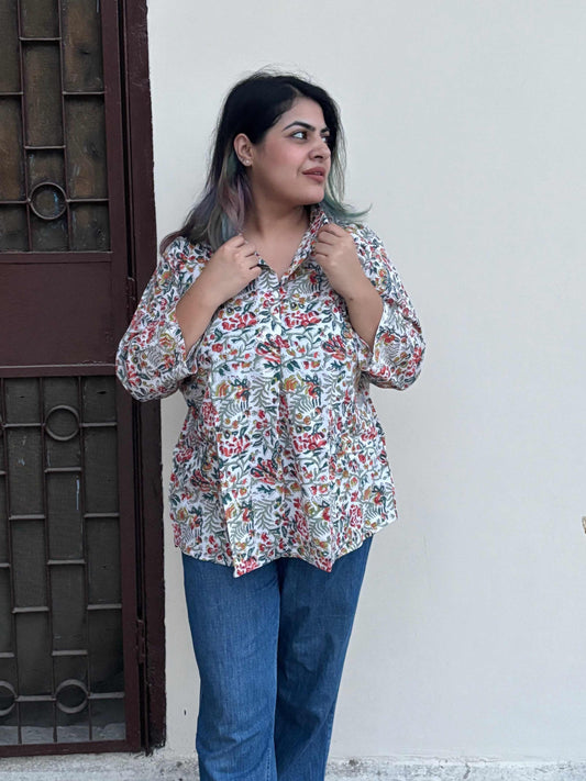 Vasanti A Line Hand Block Printed Relaxed Fit Collar Top