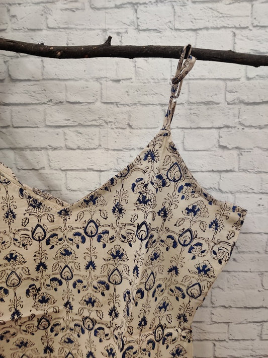Off White Bagru Hand Block Printed Spaghetti Strap Top