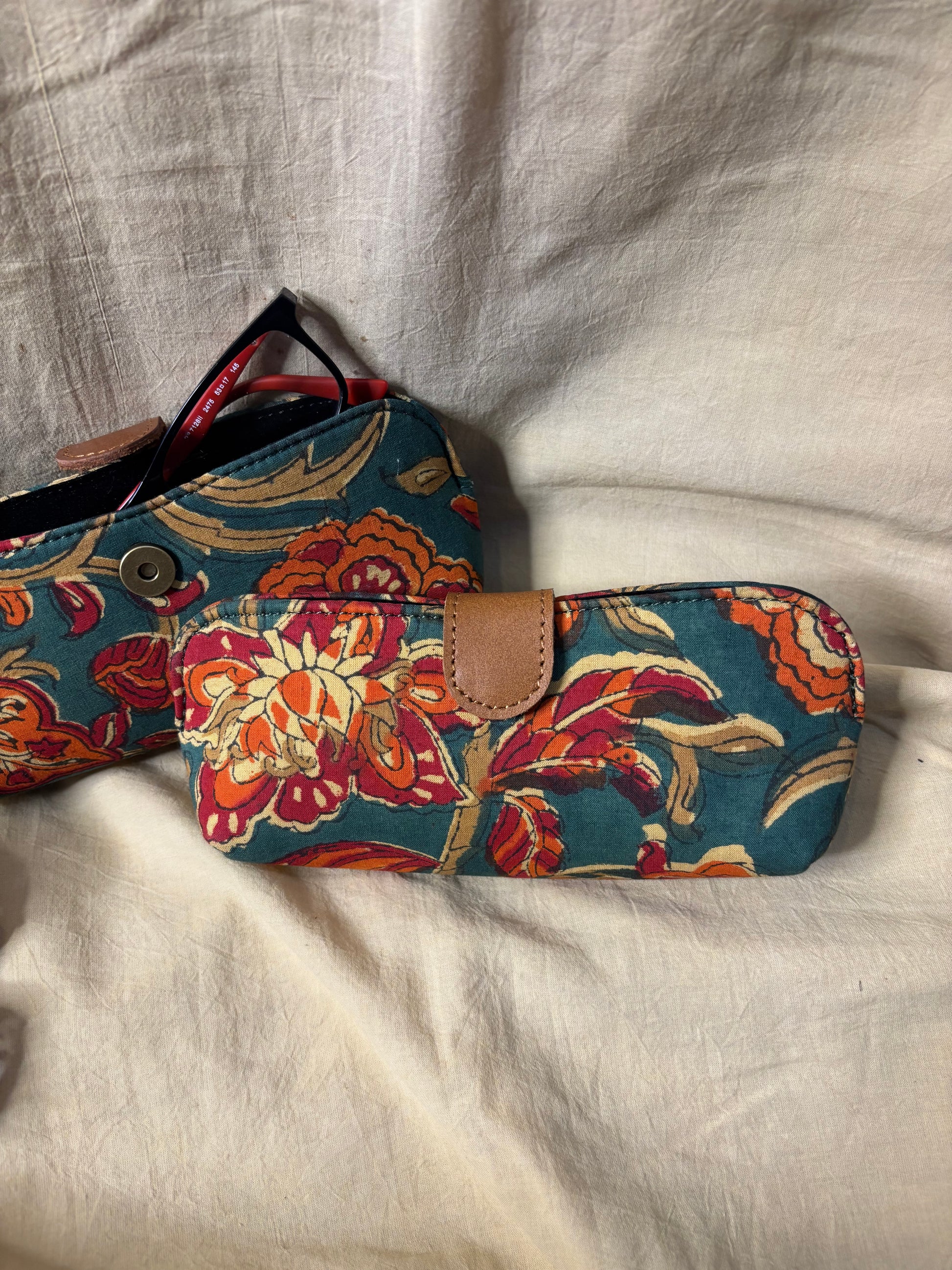 A conscious creation born out of our zero waste initiative, these specs covers are thoughtfully handcrafted using leftover hand block-printed fabric from our production. Each piece carries its own story of mindful making and sustainability.