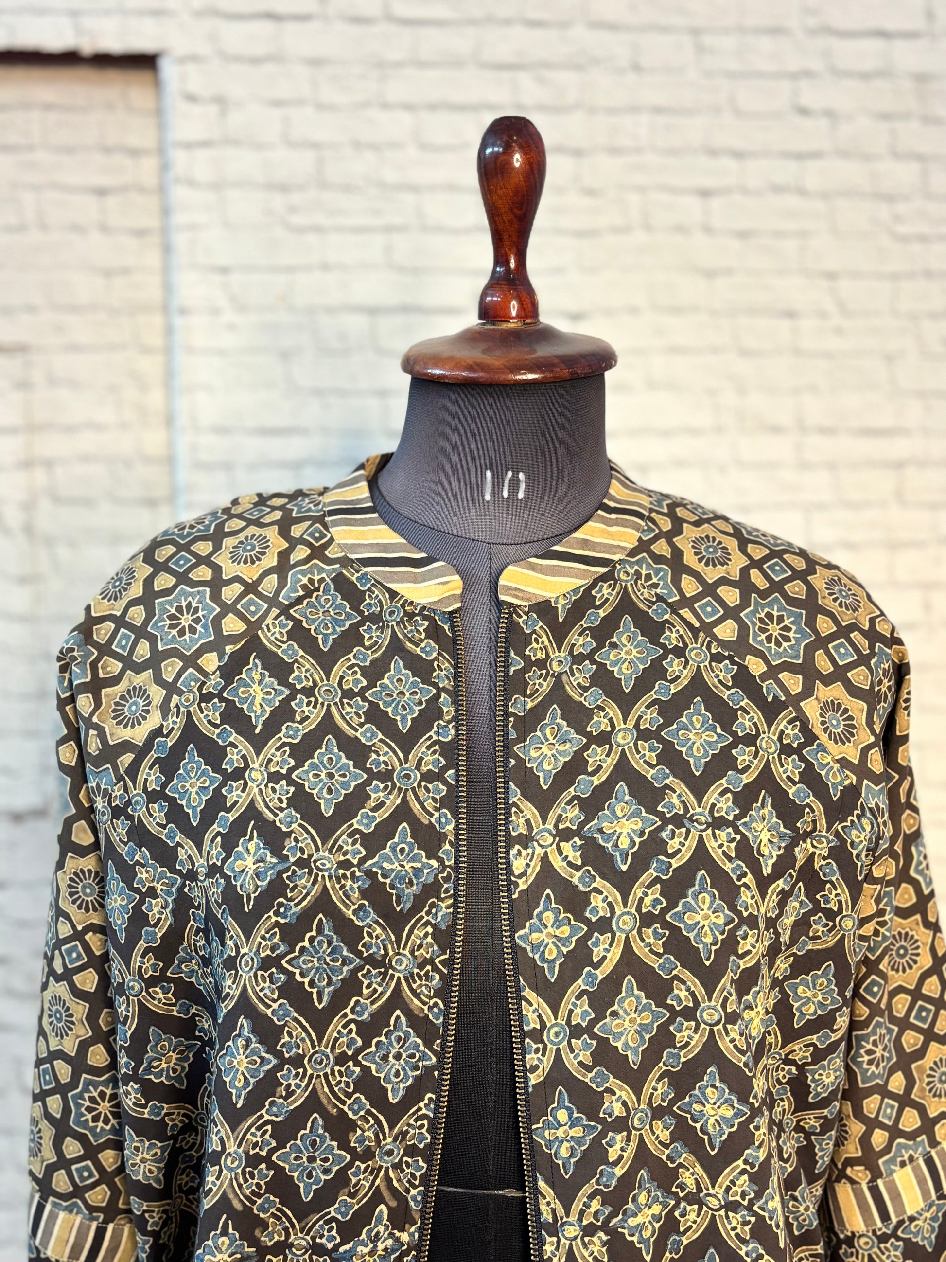 Perfect for work, travel, casual days, or festive styling—this jacket brings together comfort, warmth, and artisan-made charm. A must-have for anyone who loves sustainable fashion, boho layering, and hand block printed winter wear.