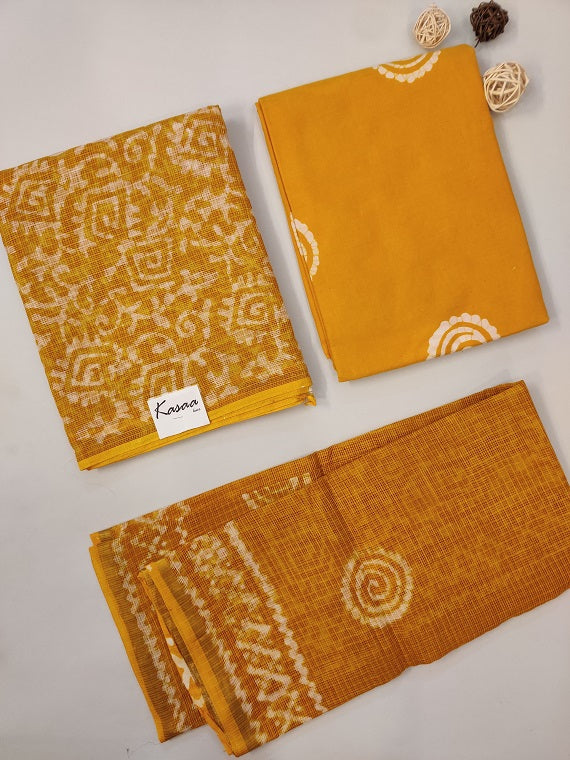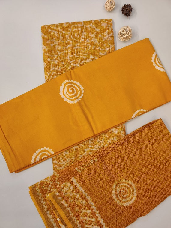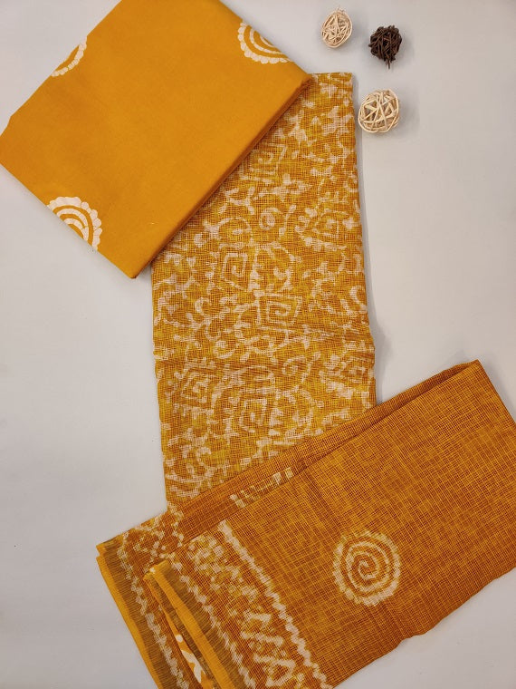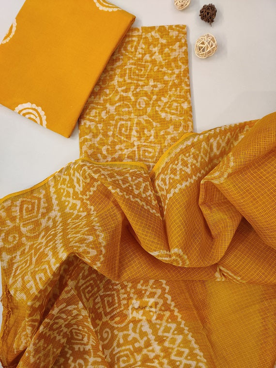 Yellow Hand Block Printed Cotton Kota Suit Set