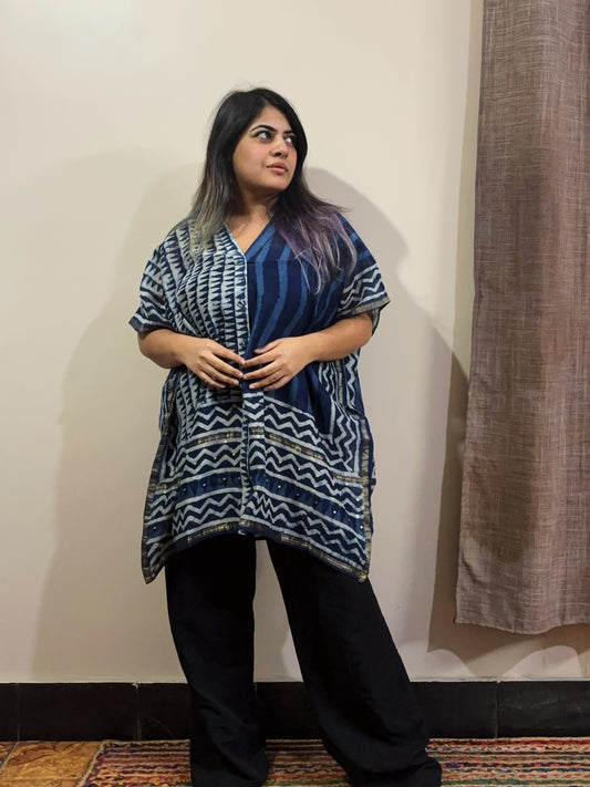 Indigo Dabu Chanderi Shirt Kaftan with Sequin Detailing