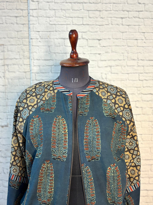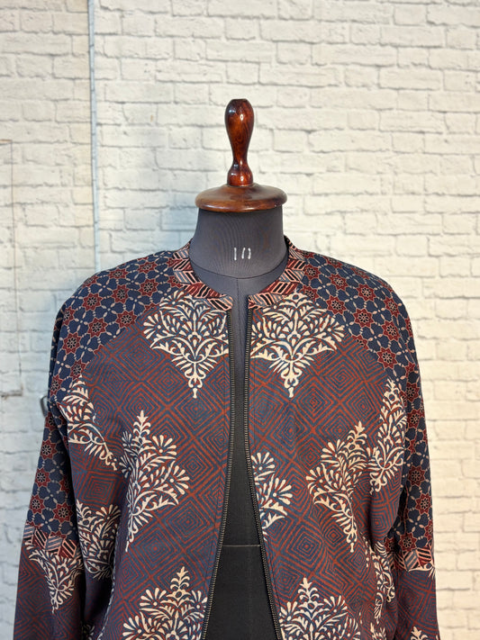 Ajrakh Hand Block Printed Patch Work Unisex Bomber Jacket
